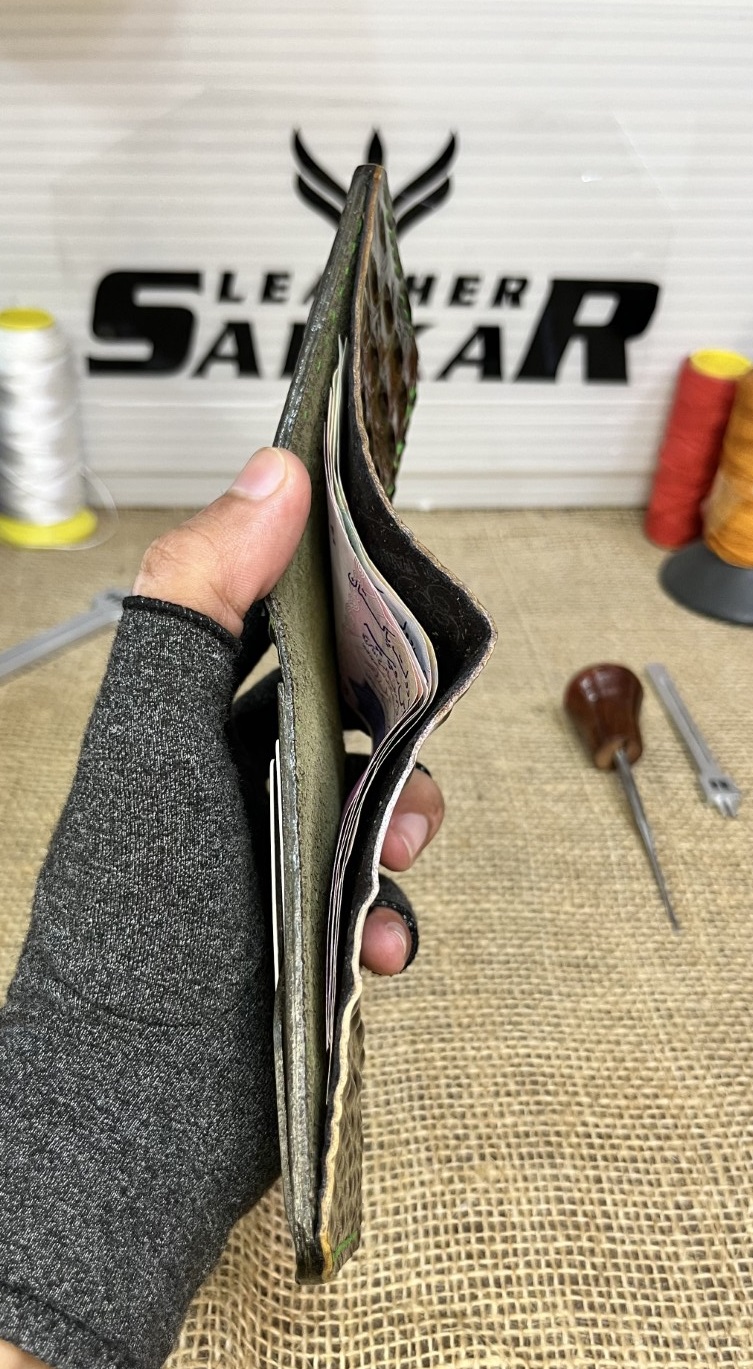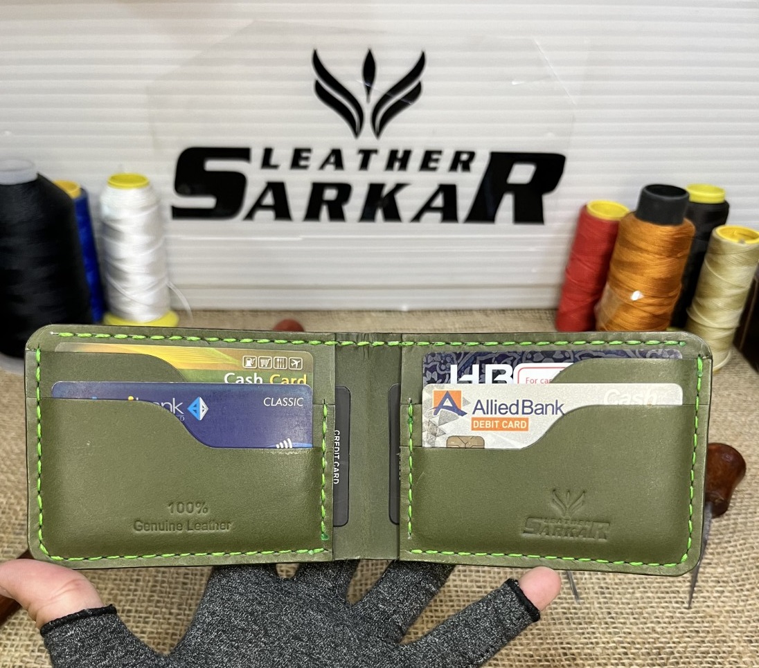 Handmade wallet Fine 12 ply Green Nylon thread stitching